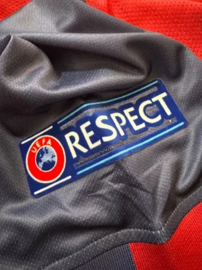 V-neck collar: It has a v-neck collar that includes the yellow and red stripes of the Senyera, the Catalan flag.