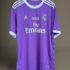 The Real Madrid 2016/17 away kit is a striking, iconic purple and white jersey that holds historical significance as the uniform worn during a highly successful season in which the club won the La Liga and Champions League double.