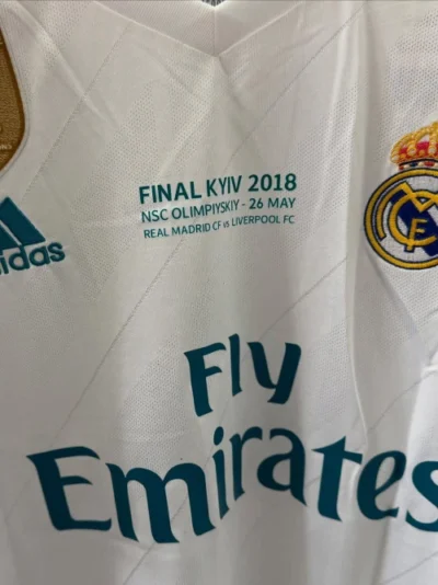 Sponsor and manufacturer: The shirt featured the “Fly Emirates” sponsor in black and the adidas three-stripe logo in sky blue.