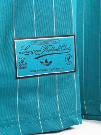 Design Notes: The design is retro-inspired, paying homage to the iconic kits of the 1990s. It features the classic adidas Trefoil logo for the first time since 1991, paired with a slightly modernized version of the LFC club crest used between 1987 and 1992. It also includes thin white pinstripes and a hidden jock tag with the Shankly Gates and “You’ll never walk alone” slogan.