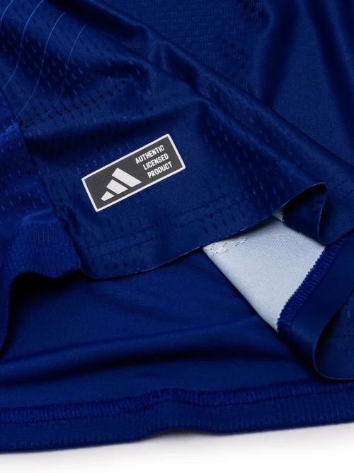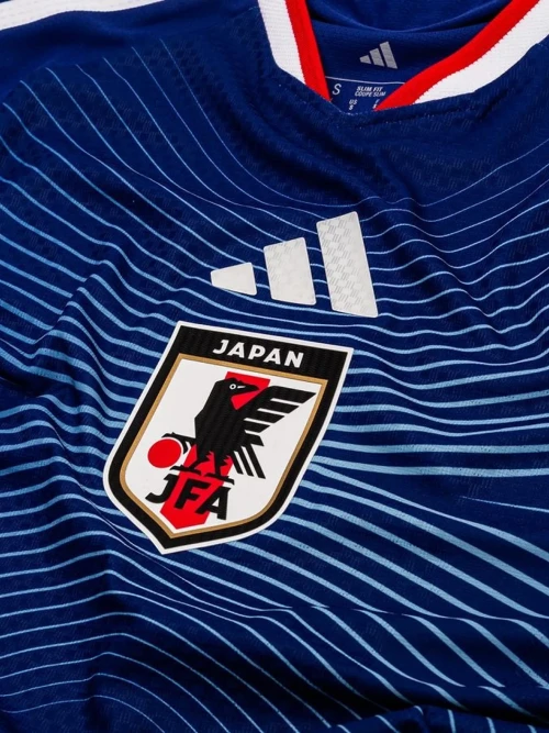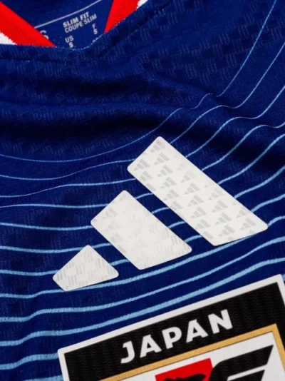 The Japan 2026 World Cup home kit, made by Adidas, features the team’s traditional blue color with ash-blue linear graphics.