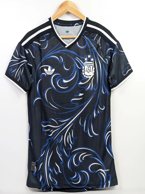 Color Scheme: The main color is black, with sky blue accents and white logos. This marks the first black Argentina kit since the 2018 World Cup.