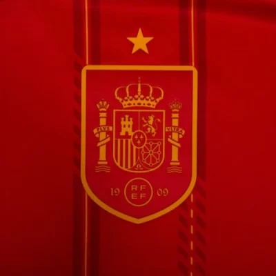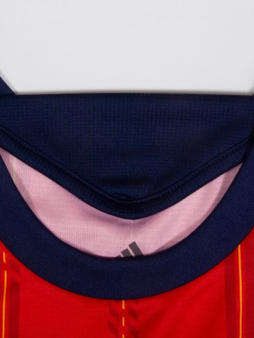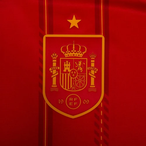 Pinstripes: Fine yellow pinstripes run vertically down the jersey, representing the colors of the Spanish flag.
